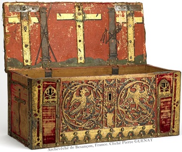 The chest used to store a smaller chest that contained the Shroud of Besançon was recently rediscovered. This chest was in the cathedral of St John when the Shroud of Besançon was still shown publicly, at least twice a year, to the crowd outside the cathedral. That Shroud was destroyed during the French Revolution along the smaller chest that contained it. The Shroud of Besançon was clearly a painted copy of the Shroud of Turin with only the frontal part.