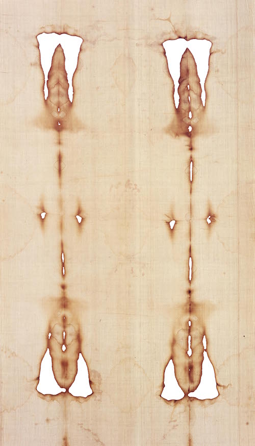 Figure 1: The middle section of the underside of the Shroud of Turin showing the bloodstains from