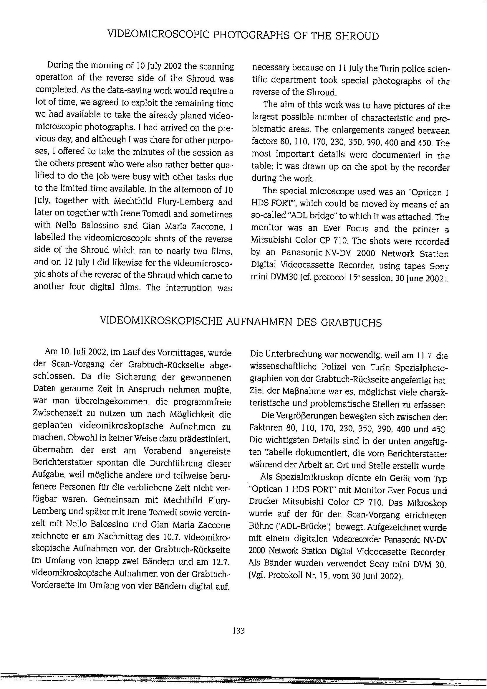 Naturally, the six photomicrographs shown on this web page are not the only photomicrographs we could extract from these videos taken in 2002. I had access to only a few minutes of them, although there are around two hours of such videos as compiled on page 135 with the timing of the videos. What other interesting photomicrographs that could be extracted is unknown to me, because, as far as I know, the other videos were not analyzed for such photomicrographs. They are kept by the authority of the diocese of Turin and are not made accessible. I could not find any good reason why they were never analyzed or used by the authority of Turin for promoting the Shroud. I know that some researchers close to the authority of Turin consider these videos useless, which I think is an incorrect assessment as can be attested by these six photomicrographs.