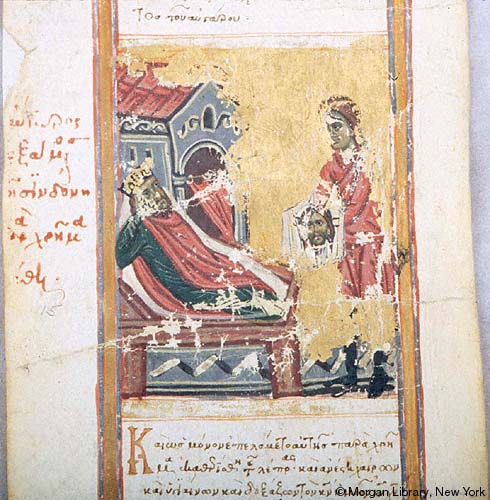 As part of the Legend of King Abgar, Christ sends an image of himself to King Abgar. That image is known as the Image of Edessa also known as the Mandylion. Actually, the legend evolved from an image painted by a messenger sent by King Abgar to an image made by Christ himself. The Mandylion can be seen in several of the miniatures of M.499. Because this manuscript M.499 was produced after the sack of Constantinople in 1204, it is almost certain that the artist who created the miniatures never saw the Mandylion itself. Furthermore, the manuscript was probably produced in Trebizond, if not, it was in Constantinople. Actually, one may ask the general question: had any artist, who reproduced the Mandylion, seen the real Mandylion before the sack of Constantinople? The answer is likely negative. The many artistic representations of the Mandylion that we still have today are probably based on hearsay and on the legend of King Abgar. Manuscript M.499 would be a documentary evidence supporting this claim, because we can see in it the typical artistic reproductions of the Mandylion similar to many others produced before 1204, yet the artist of M.499 can hardly have seen the real Mandylion.
