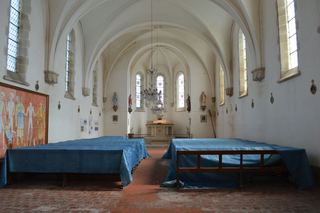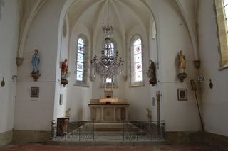 The first ostentations of the Shroud of Turin in the Western world was in Lirey, a hamlet 16 km southwest of Troyes, the nearest large city. Lirey is still today a hamlet with about fourty houses and a 19th century chapel located on the same piece of land where the first chapel was built in 1353. The first ostentation of the Shroud would have been around 1355, but we do not know the exact year. In 1418, the Shroud leaves the chapel and Lirey to be kept at the castle of Montfort under the protection of Humbert de Villersexel, the second husband of Marguerite de Charny, granddaughter of Geoffroy de Charny. The Shroud never came back to Lirey although the canons of Lirey tried many times over a century to regain the Shroud. A second chapel was inaugurated in 1525, which was demolished in 1828. A third chapel was built at the end of the 19th century. The following photographs show the inside and outside of this third chapel at Lirey.
